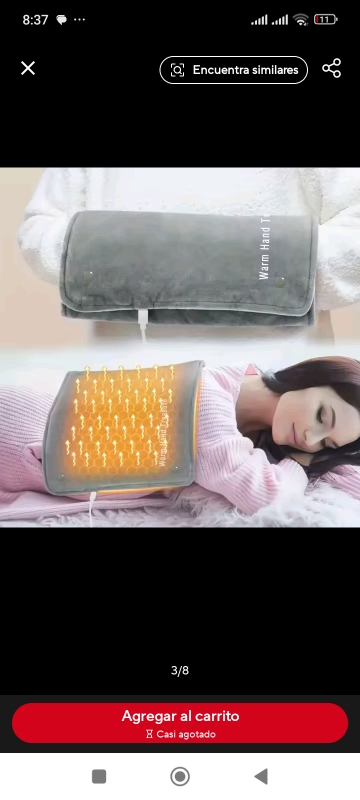 Esta super chiquita calienta medio, el cable es de USB muy muy corto y sin cuadro de contacto, no se puede regular la tempreratura y la tela muy suabe y cómoda