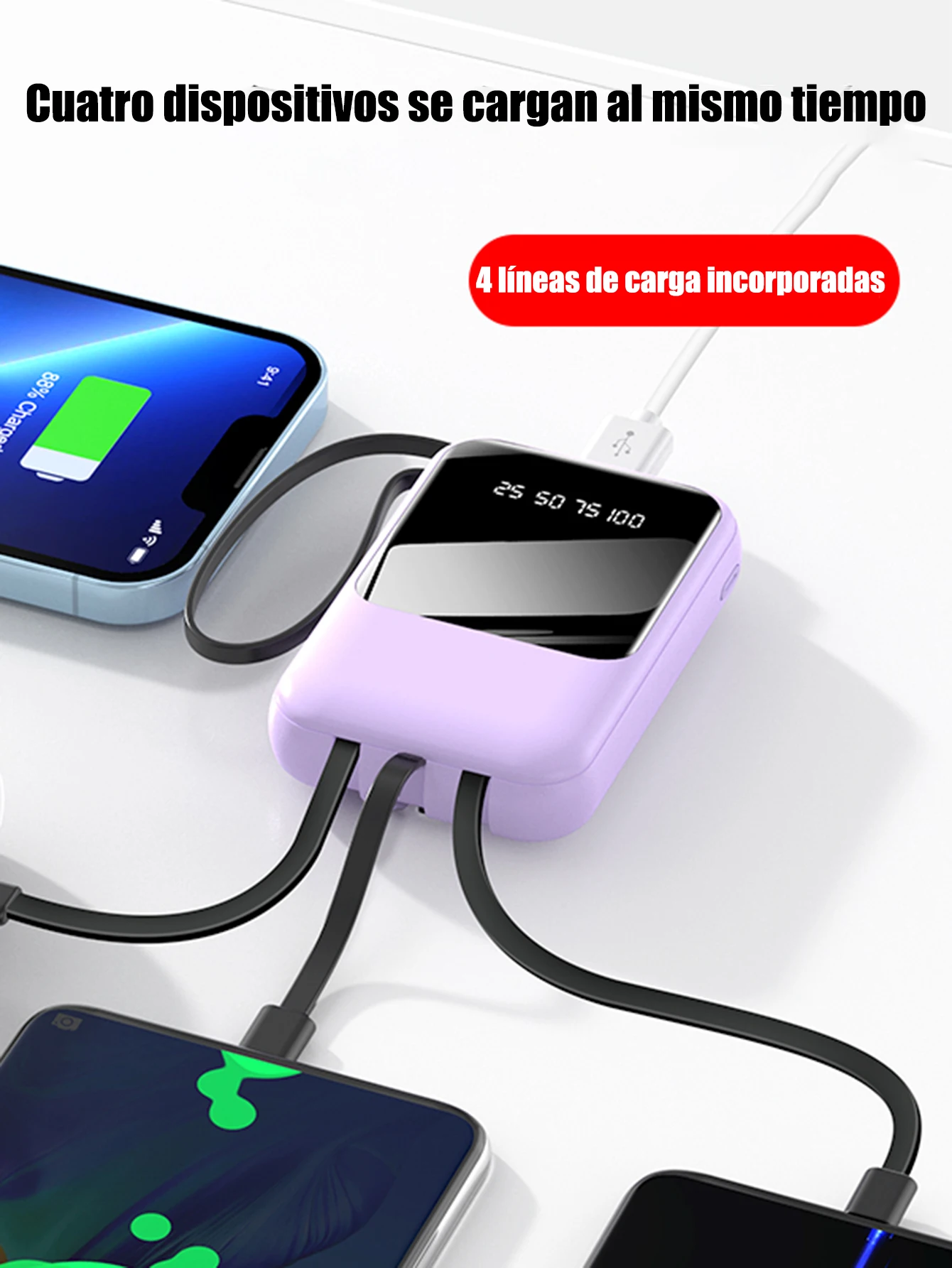 Power Bank Batería Portátil 20000mah carga rápida incorporada con pantalla digital de 4 cables Banco de energía externo