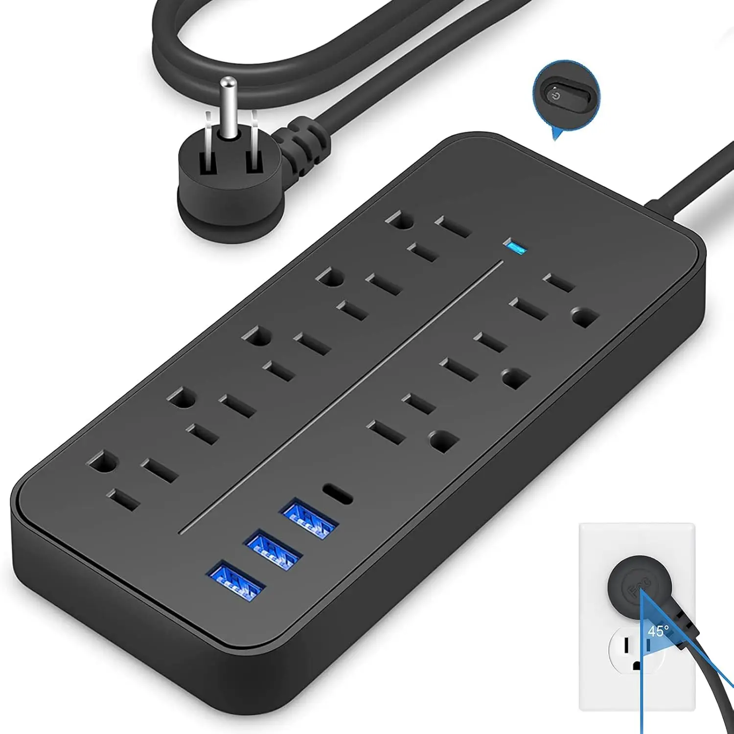 USB Multicontacto, Regleta de 1,2 m, 8 Salidas, 3 Puertos de Carga USB, (5 V / 2 A), 1 Puerto Type-C, Conector múltiple, Regleta para el hogar, Oficina, Dormitorio, Negro